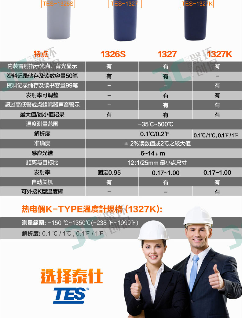 TES-1327K-USB红外线测温仪可选择℃/℉单位 *大值、*小值功能 温度测量范围 -20℃~+500℃ 内装雷射指示光点、背光显示 距离与目标比 12:1; 25mm*小点尺寸 0.1℃/0.2℉分辨率 固定 0.95。