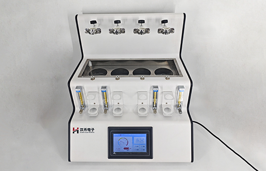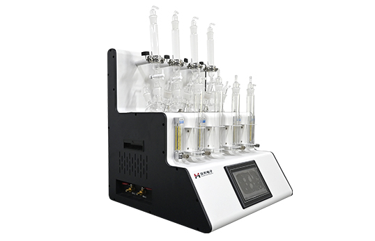 采用垂直加酸、氮气吹脱、酸化吸收一体化设计。盐酸入口、气体进口、样品出口三口一体但又相互区分,操作过程互不干扰。
