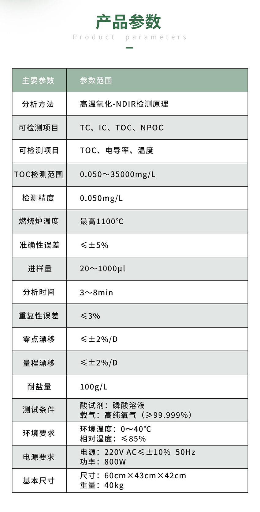 | 分析方法 | 高温氧化-NDIR检测原理 |